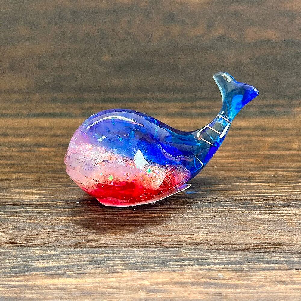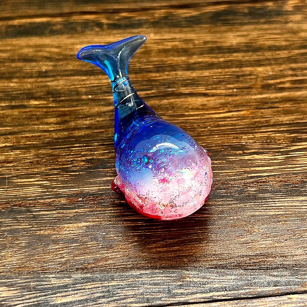 神秘的で可愛いクジラのオルゴナイト。天然石やラメを使って、美しく神秘的でファンタジーな深海の世界に仕上げました。