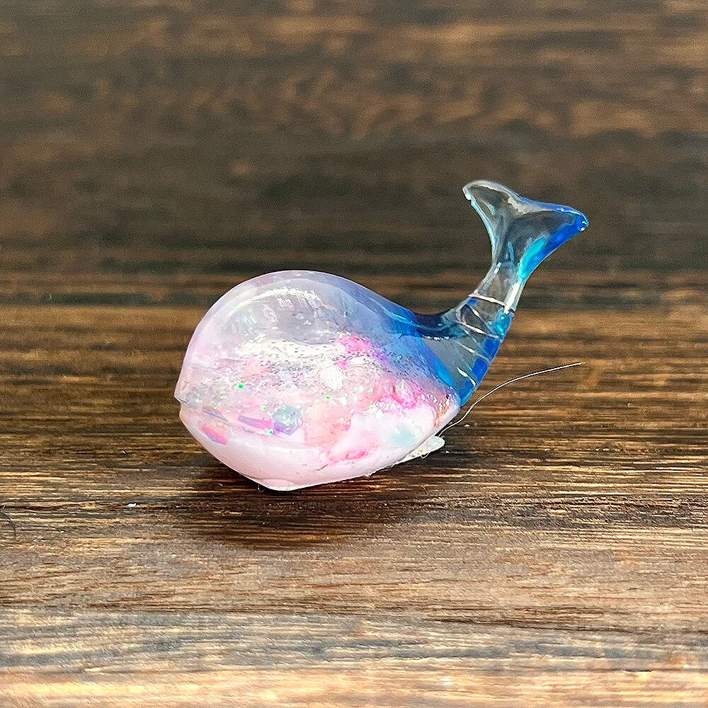 神秘的で可愛いクジラのオルゴナイト。天然石やラメを使って、美しく神秘的でファンタジーな深海の世界に仕上げました。