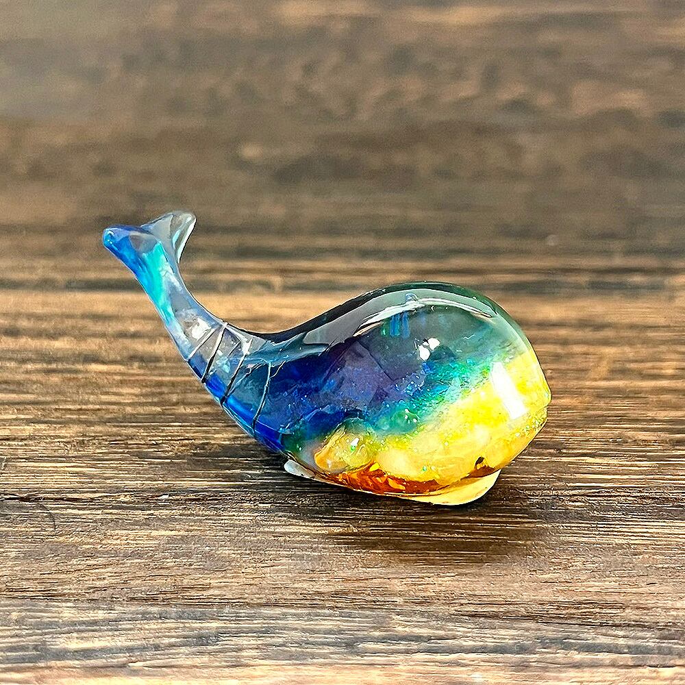 神秘的で可愛いクジラのオルゴナイト。天然石やラメを使って、美しく神秘的でファンタジーな深海の世界に仕上げました。