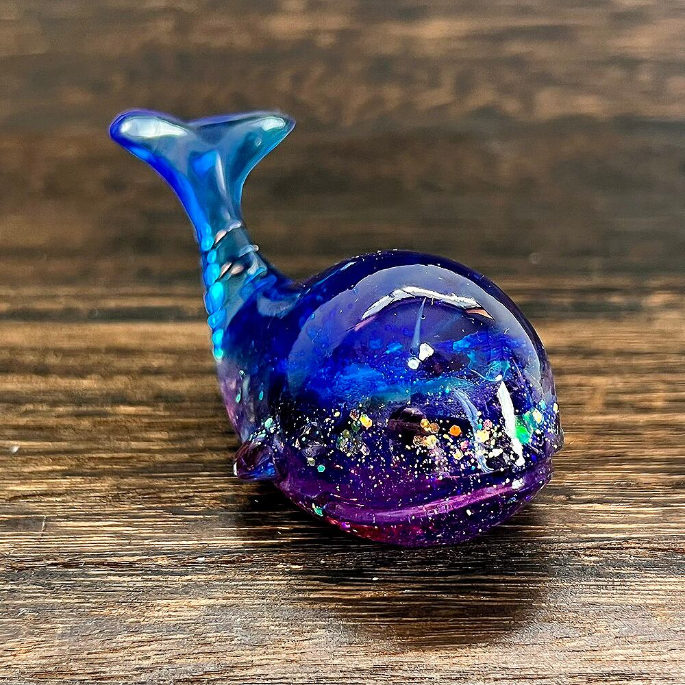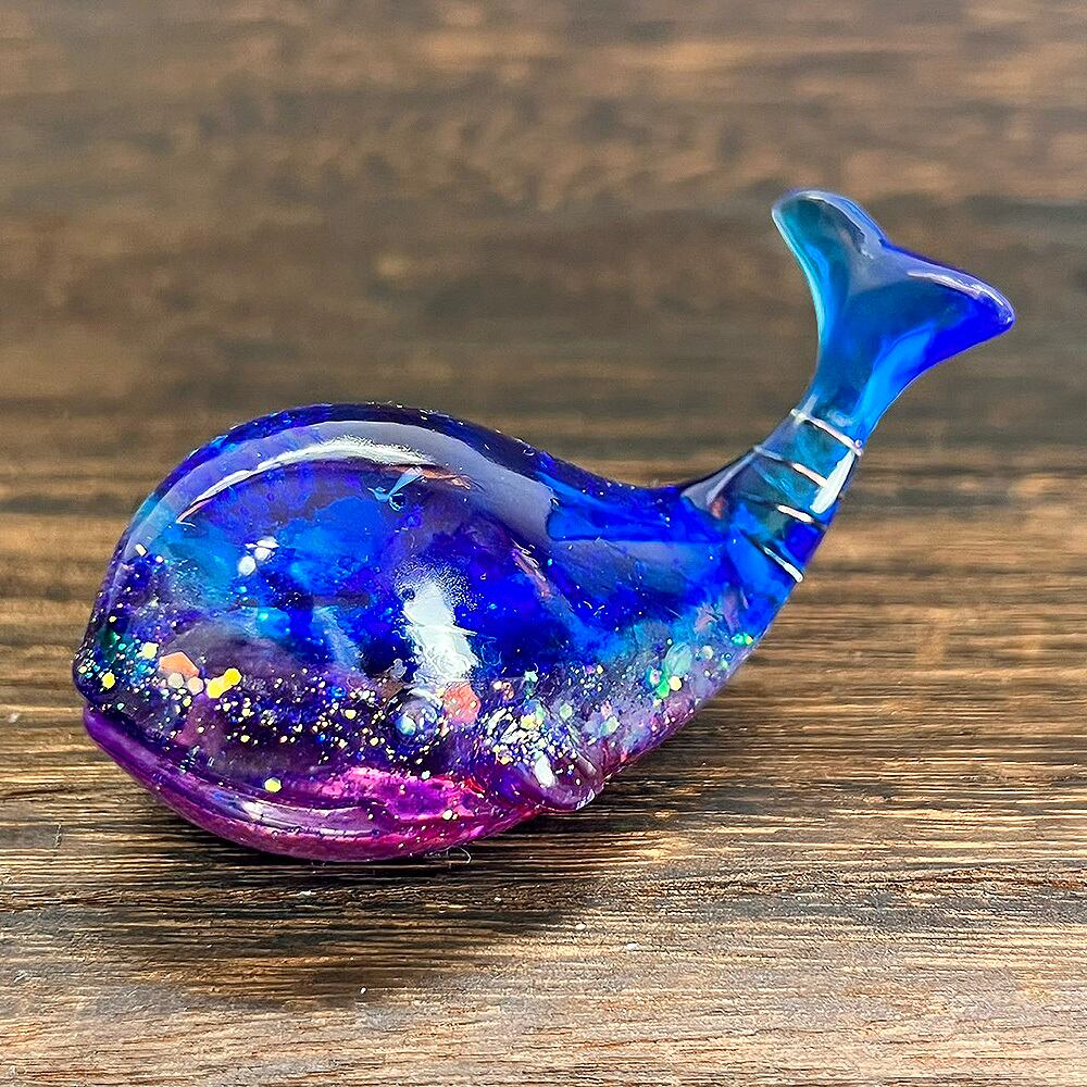 神秘的で可愛いクジラのオルゴナイト。天然石やラメを使って、美しく神秘的でファンタジーな深海の世界に仕上げました。