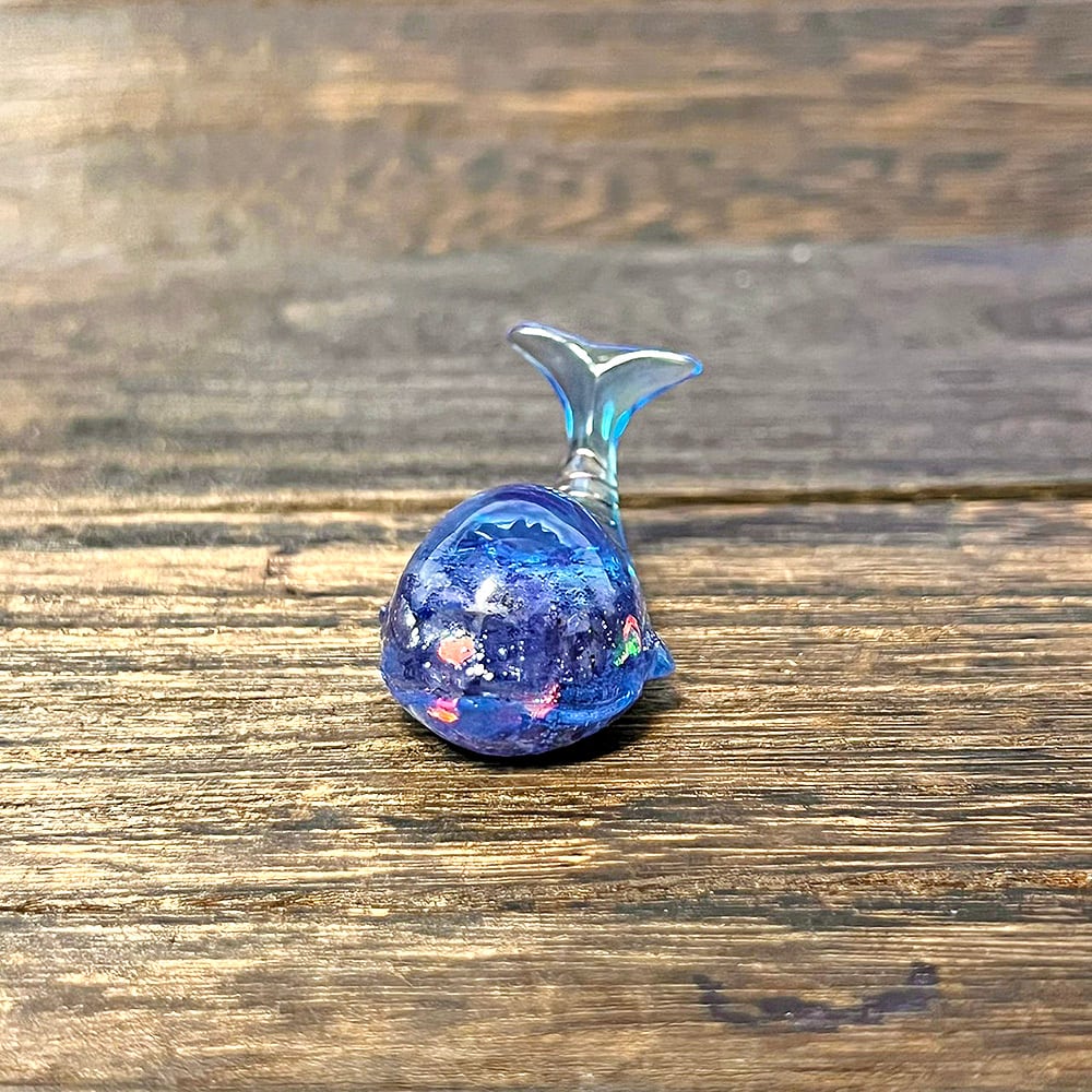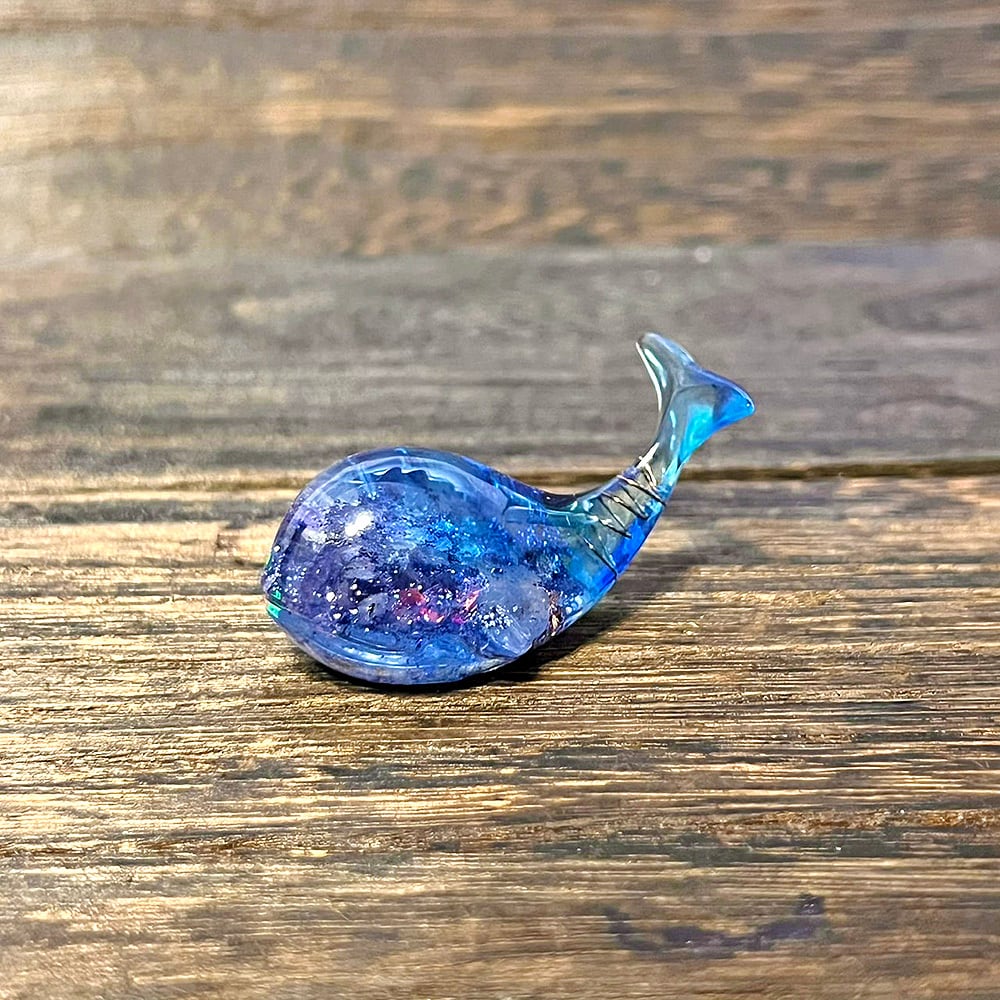 神秘的で可愛いクジラのオルゴナイト。天然石やラメを使って、美しく神秘的でファンタジーな深海の世界に仕上げました。