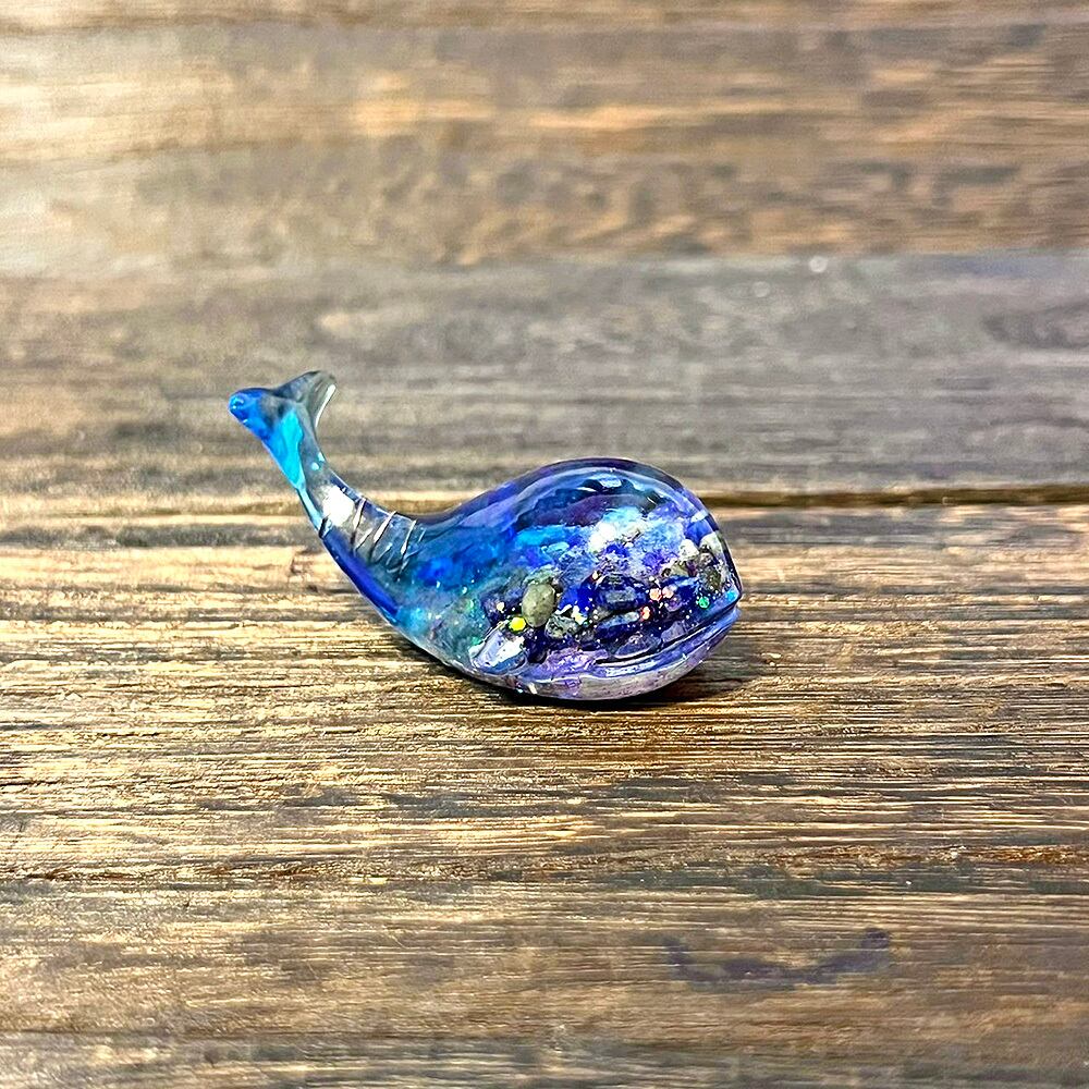 神秘的で可愛いクジラのオルゴナイト。天然石やラメを使って、美しく神秘的でファンタジーな深海の世界に仕上げました。