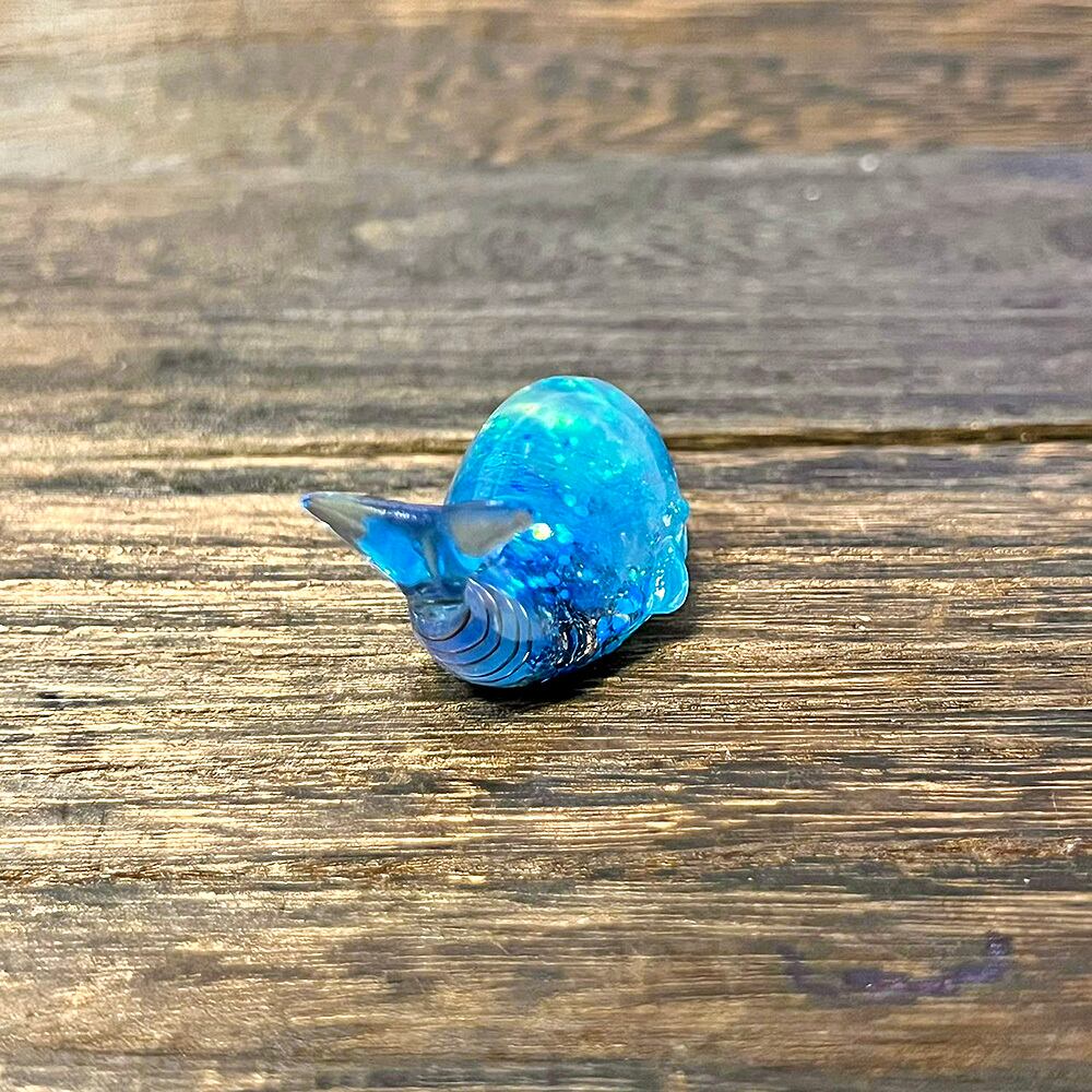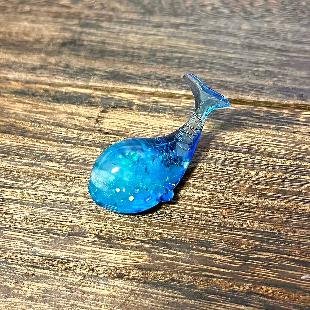 神秘的で可愛いクジラのオルゴナイト。天然石やラメを使って、美しく神秘的でファンタジーな深海の世界に仕上げました。