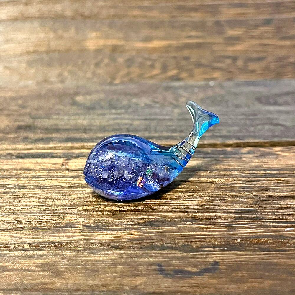 神秘的で可愛いクジラのオルゴナイト。天然石やラメを使って、美しく神秘的でファンタジーな深海の世界に仕上げました。
