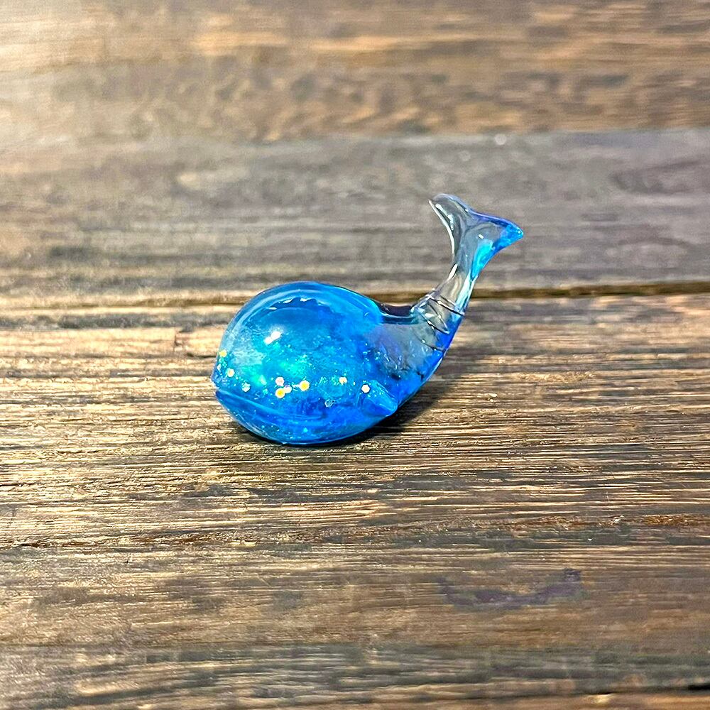 神秘的で可愛いクジラのオルゴナイト。天然石やラメを使って、美しく神秘的でファンタジーな深海の世界に仕上げました。
