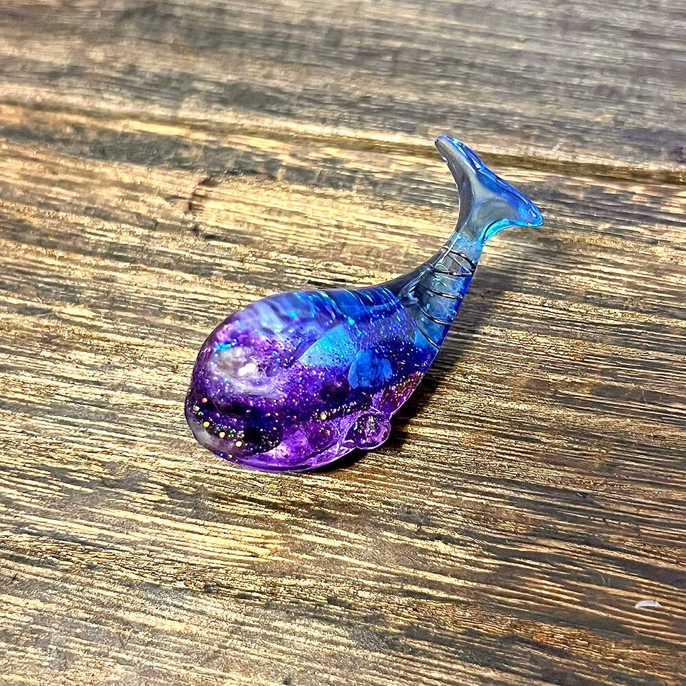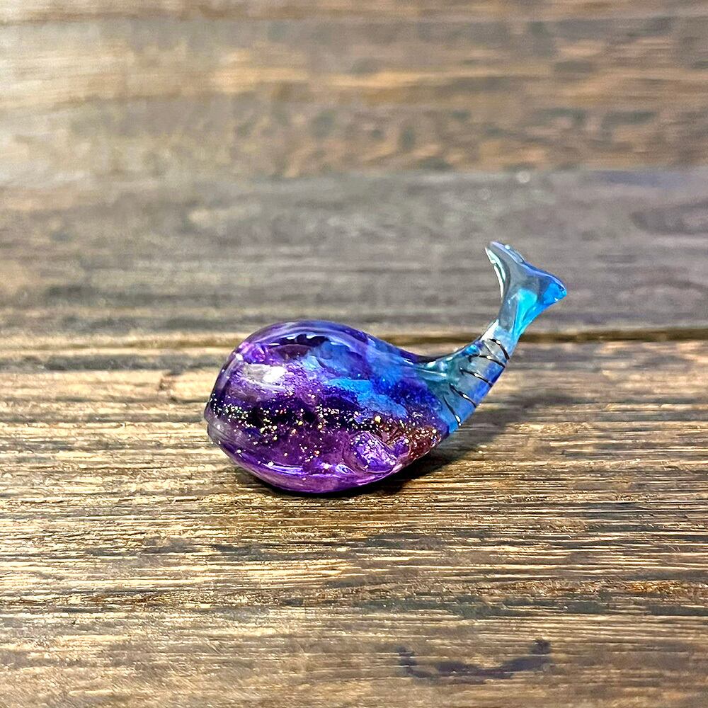神秘的で可愛いクジラのオルゴナイト。天然石やラメを使って、美しく神秘的でファンタジーな深海の世界に仕上げました。