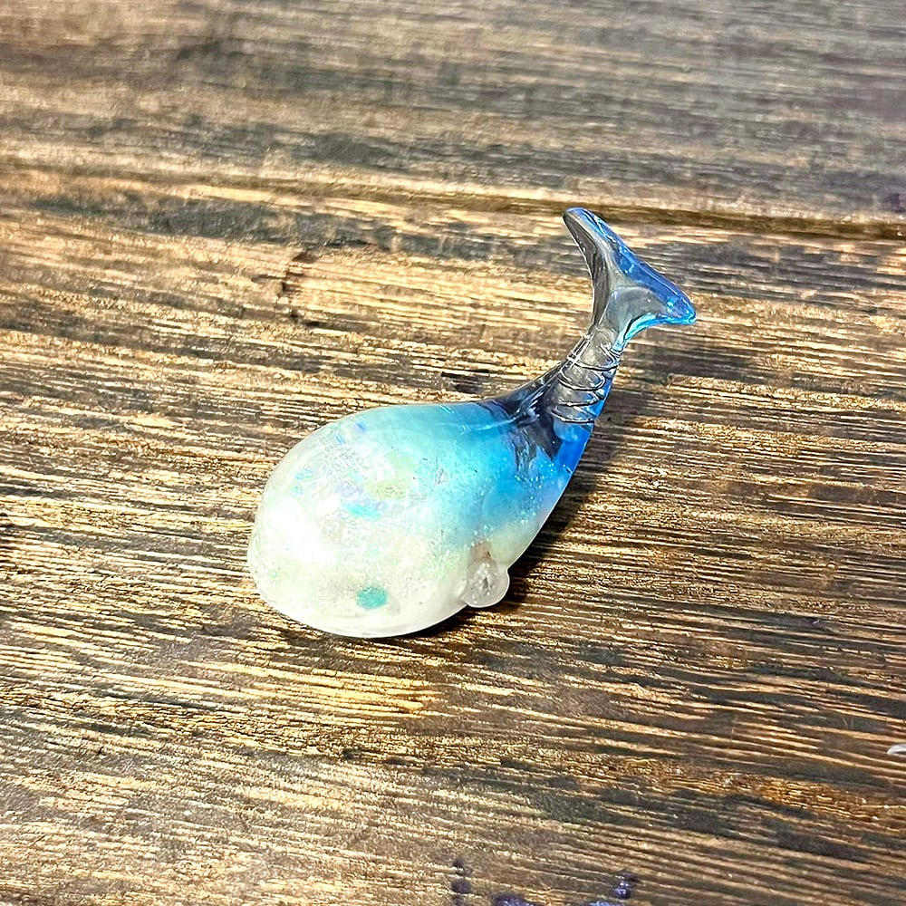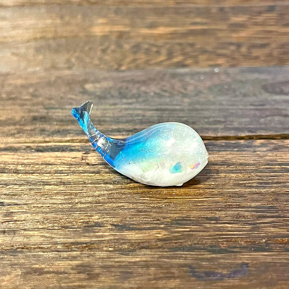 神秘的で可愛いクジラのオルゴナイト。天然石やラメを使って、美しく神秘的でファンタジーな深海の世界に仕上げました。