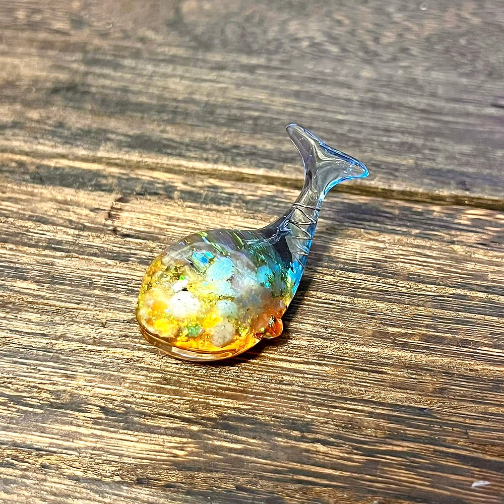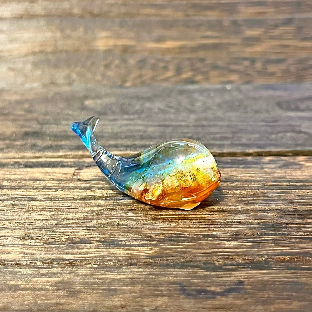 神秘的で可愛いクジラのオルゴナイト。天然石やラメを使って、美しく神秘的でファンタジーな深海の世界に仕上げました。