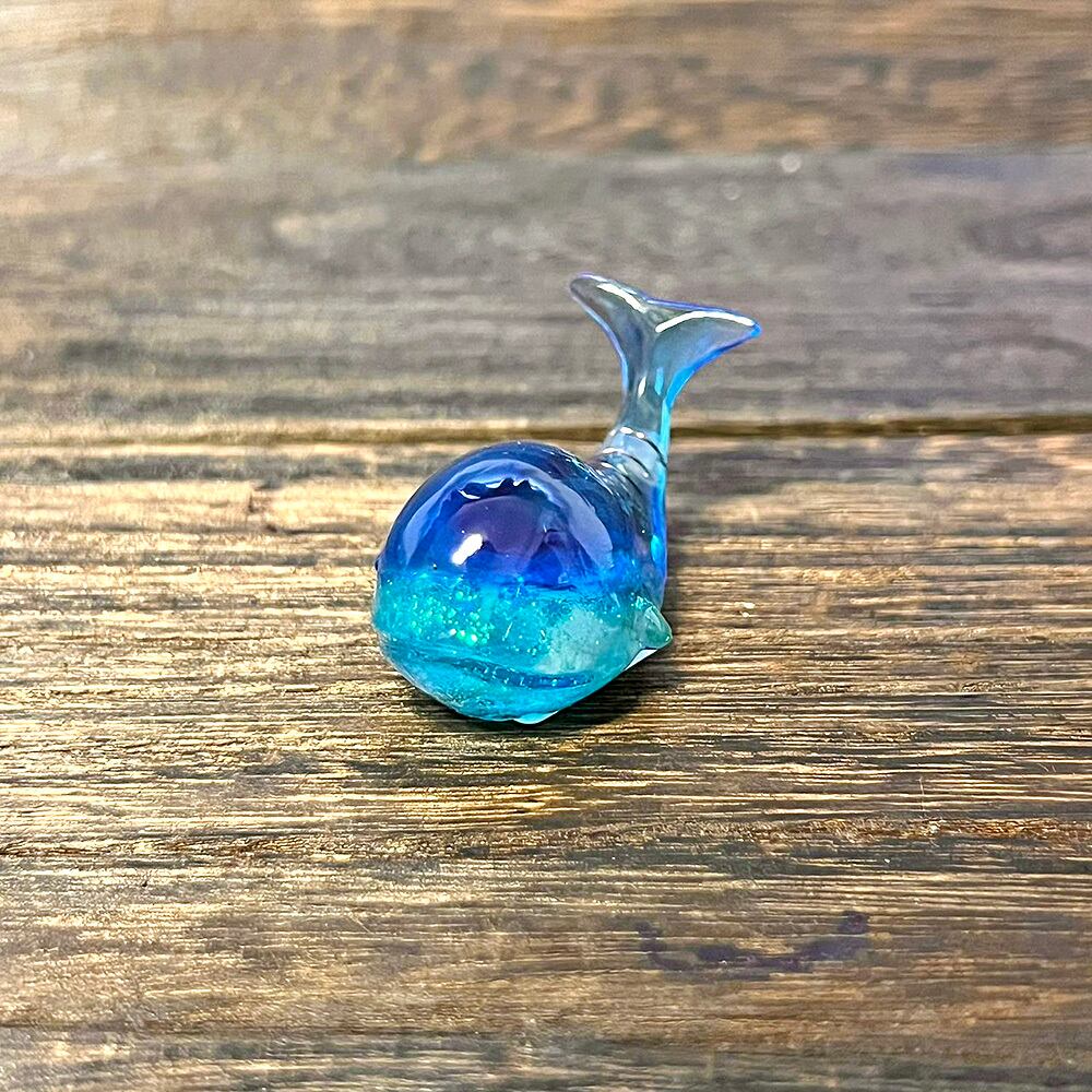 神秘的で可愛いクジラのオルゴナイト。天然石やラメを使って、美しく神秘的でファンタジーな深海の世界に仕上げました。