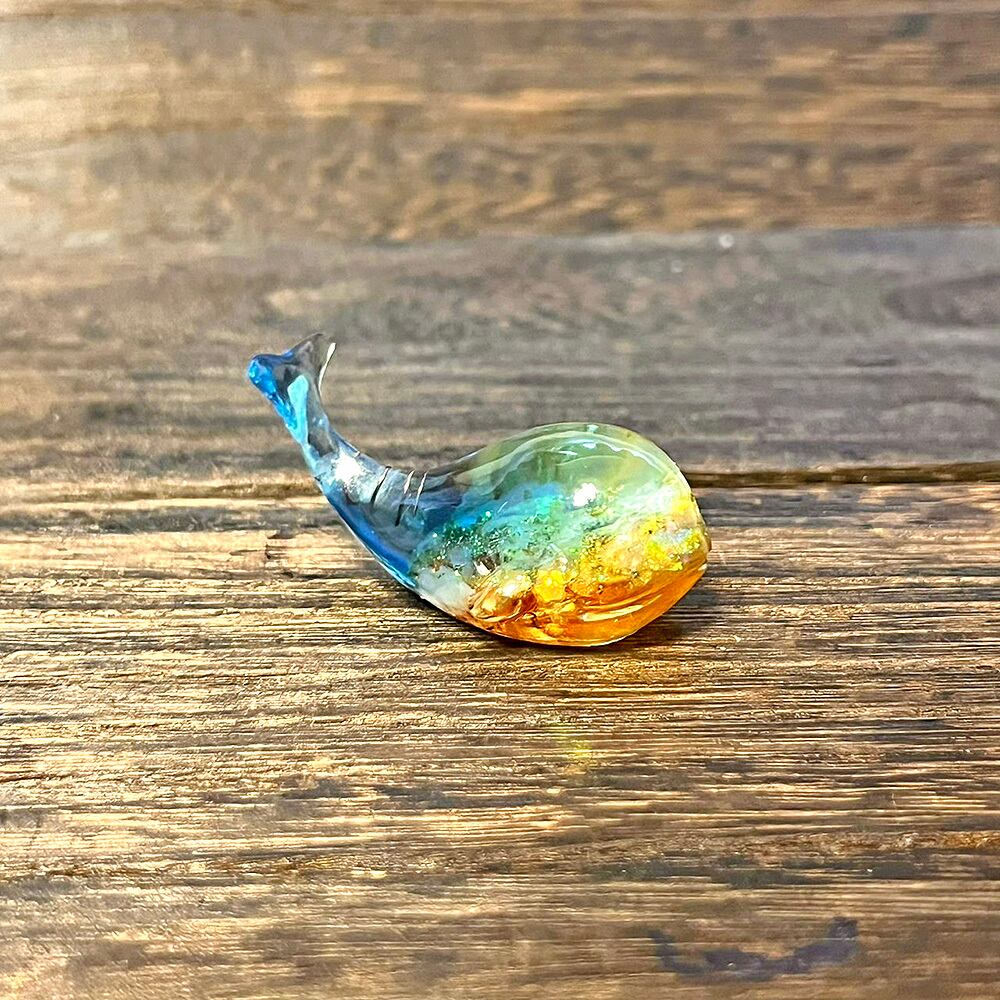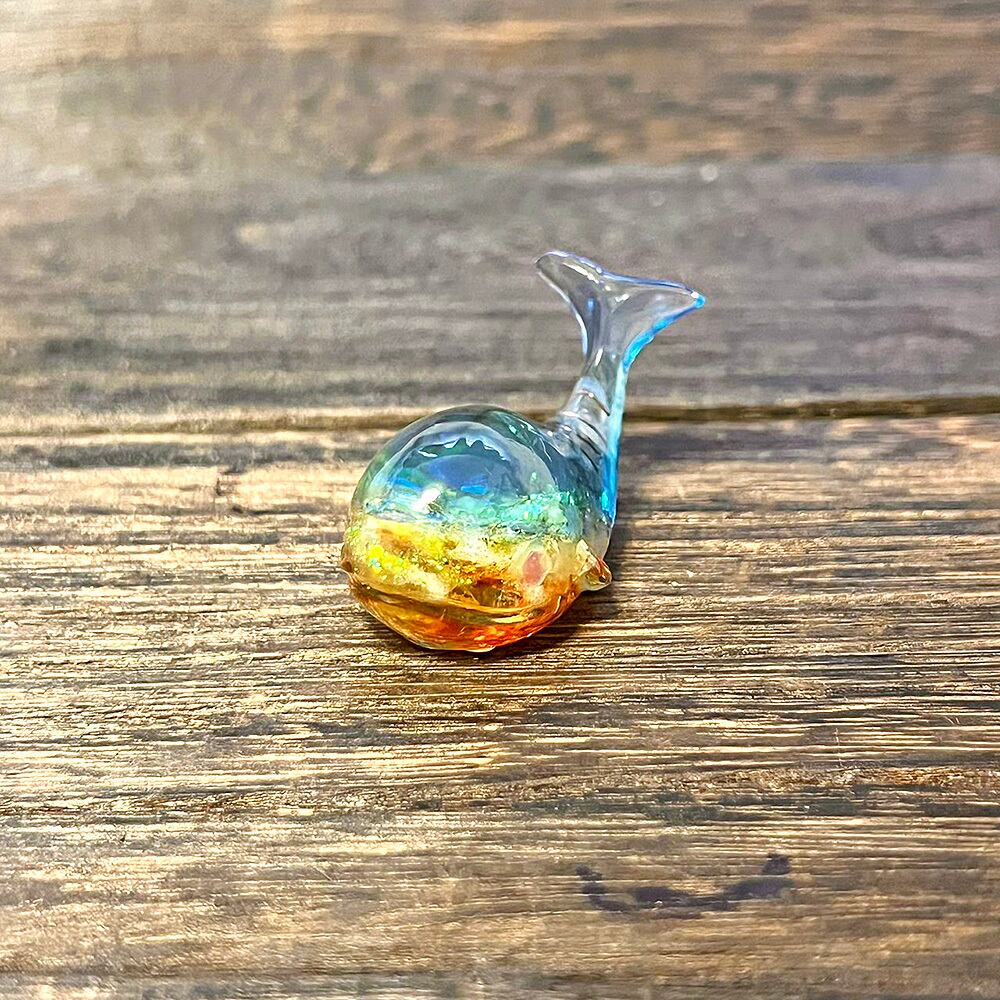 神秘的で可愛いクジラのオルゴナイト。天然石やラメを使って、美しく神秘的でファンタジーな深海の世界に仕上げました。
