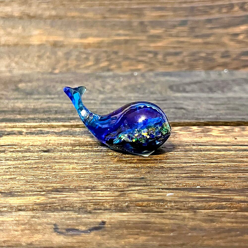 神秘的で可愛いクジラのオルゴナイト。天然石やラメを使って、美しく神秘的でファンタジーな深海の世界に仕上げました。