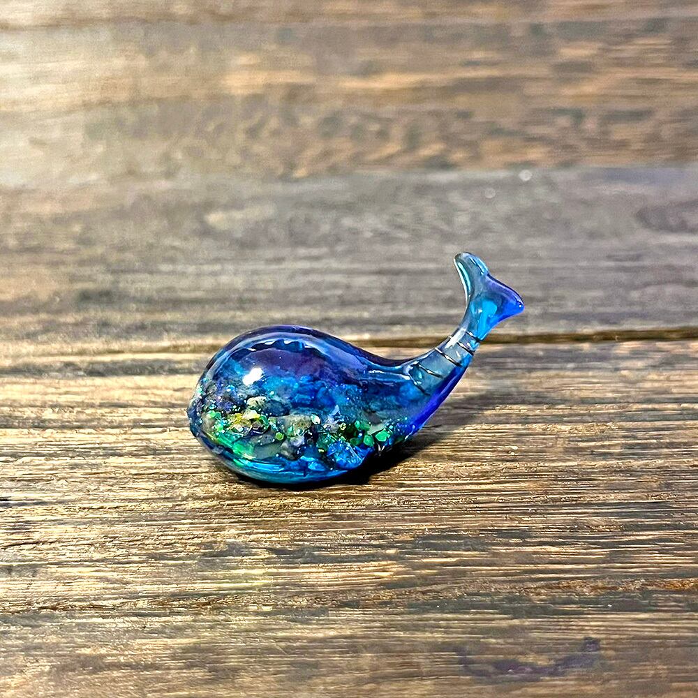 神秘的で可愛いクジラのオルゴナイト。天然石やラメを使って、美しく神秘的でファンタジーな深海の世界に仕上げました。