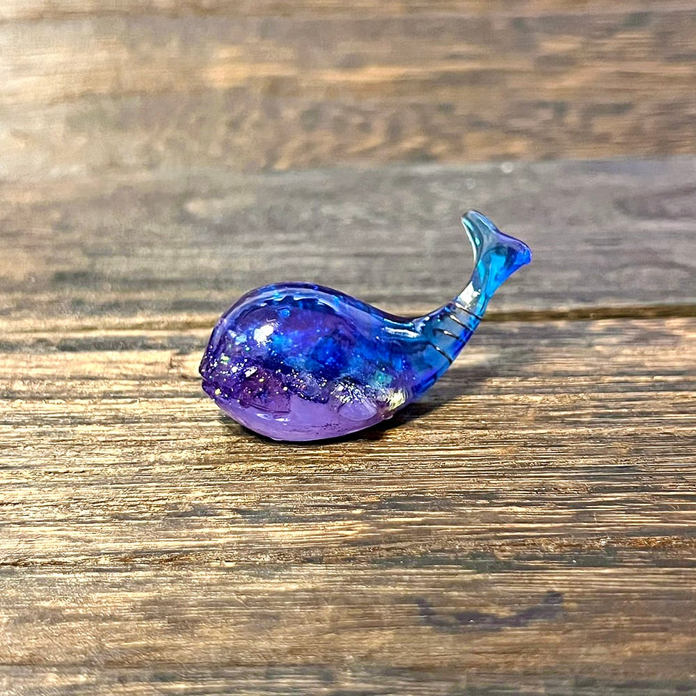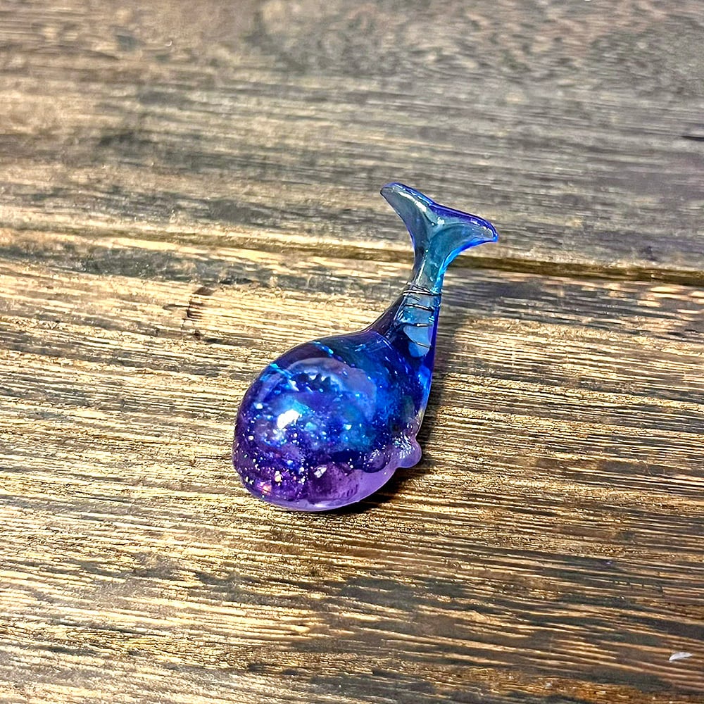 神秘的で可愛いクジラのオルゴナイト。天然石やラメを使って、美しく神秘的でファンタジーな深海の世界に仕上げました。