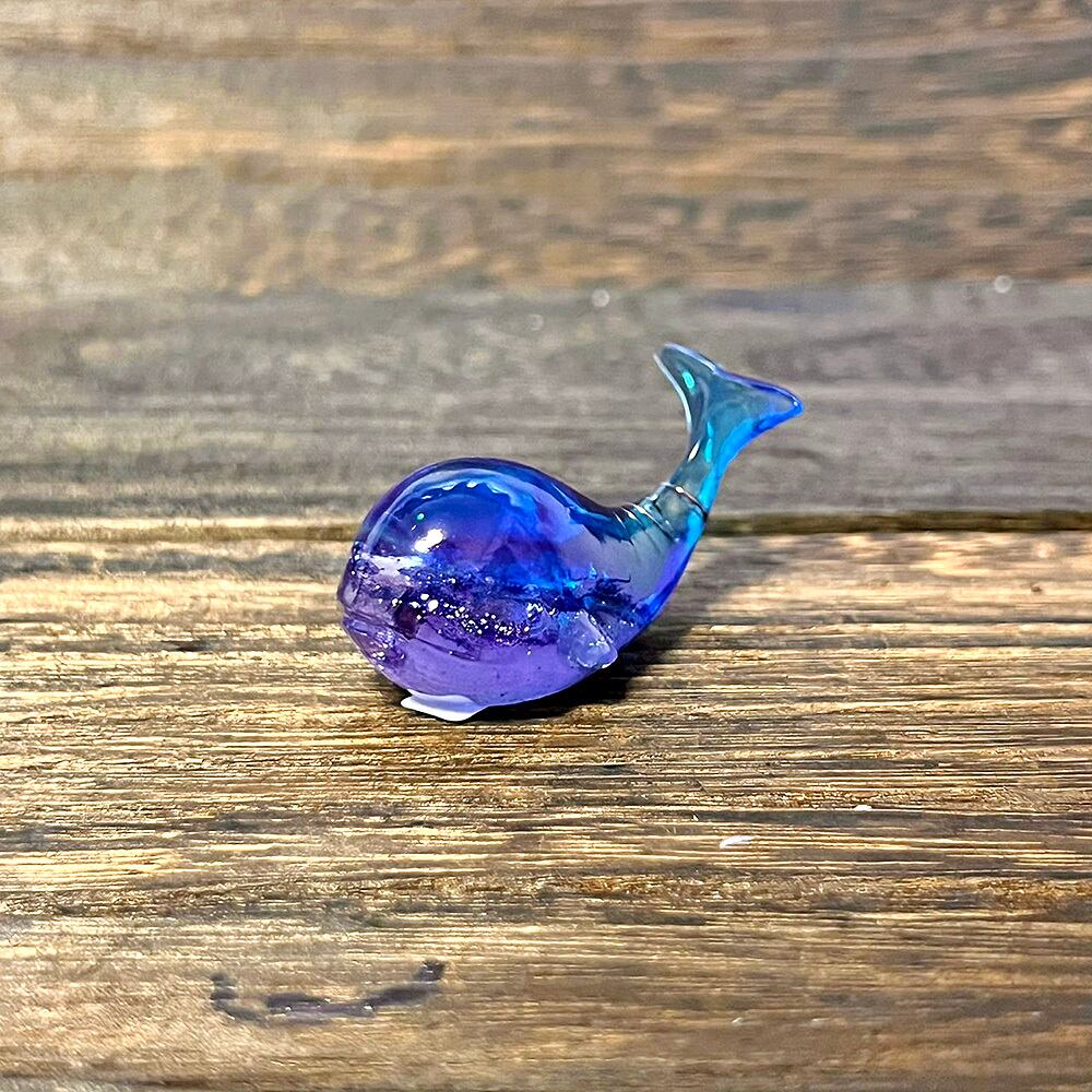 神秘的で可愛いクジラのオルゴナイト。天然石やラメを使って、美しく神秘的でファンタジーな深海の世界に仕上げました。