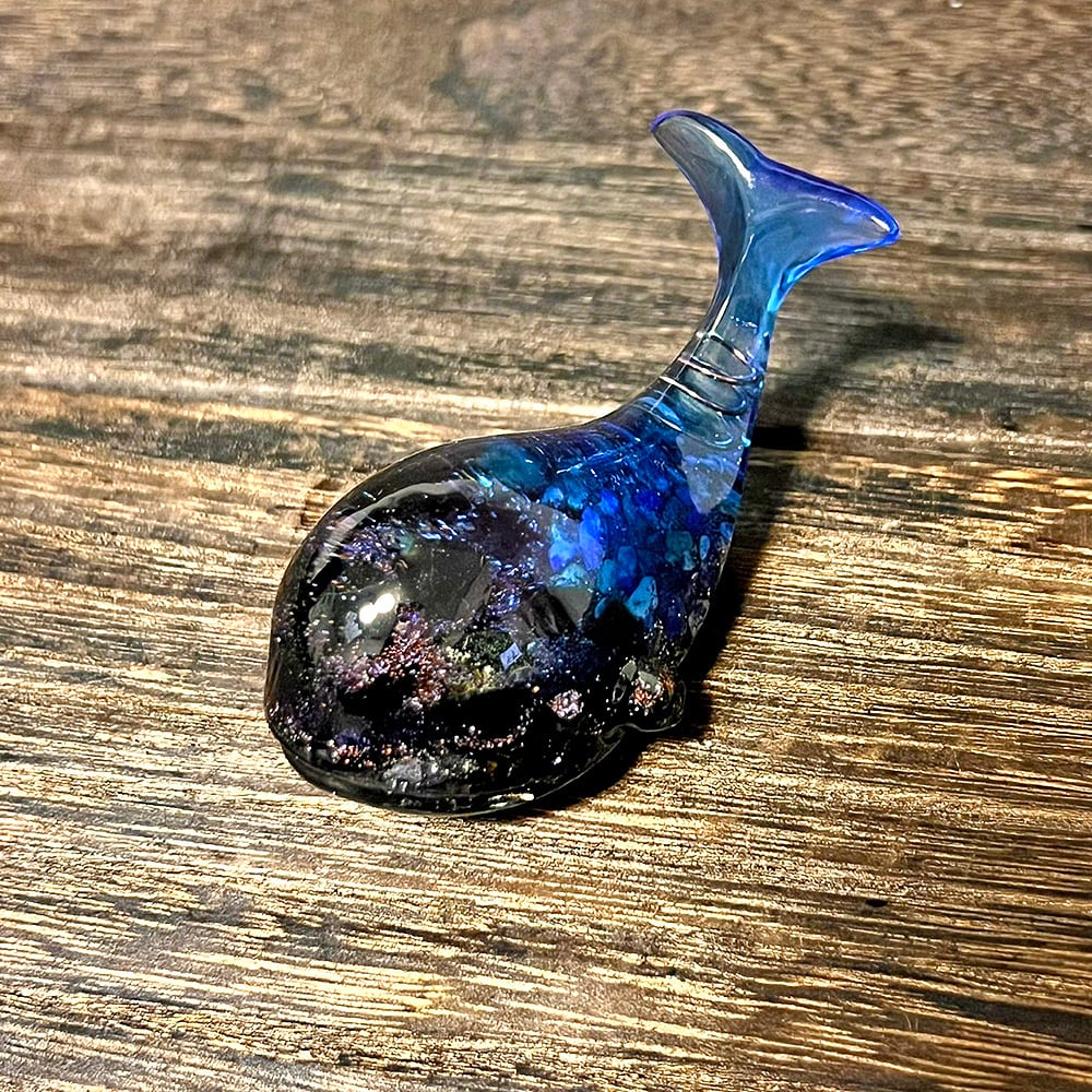 神秘的で可愛いクジラのオルゴナイト。天然石やラメを使って、美しく神秘的でファンタジーな深海の世界に仕上げました。