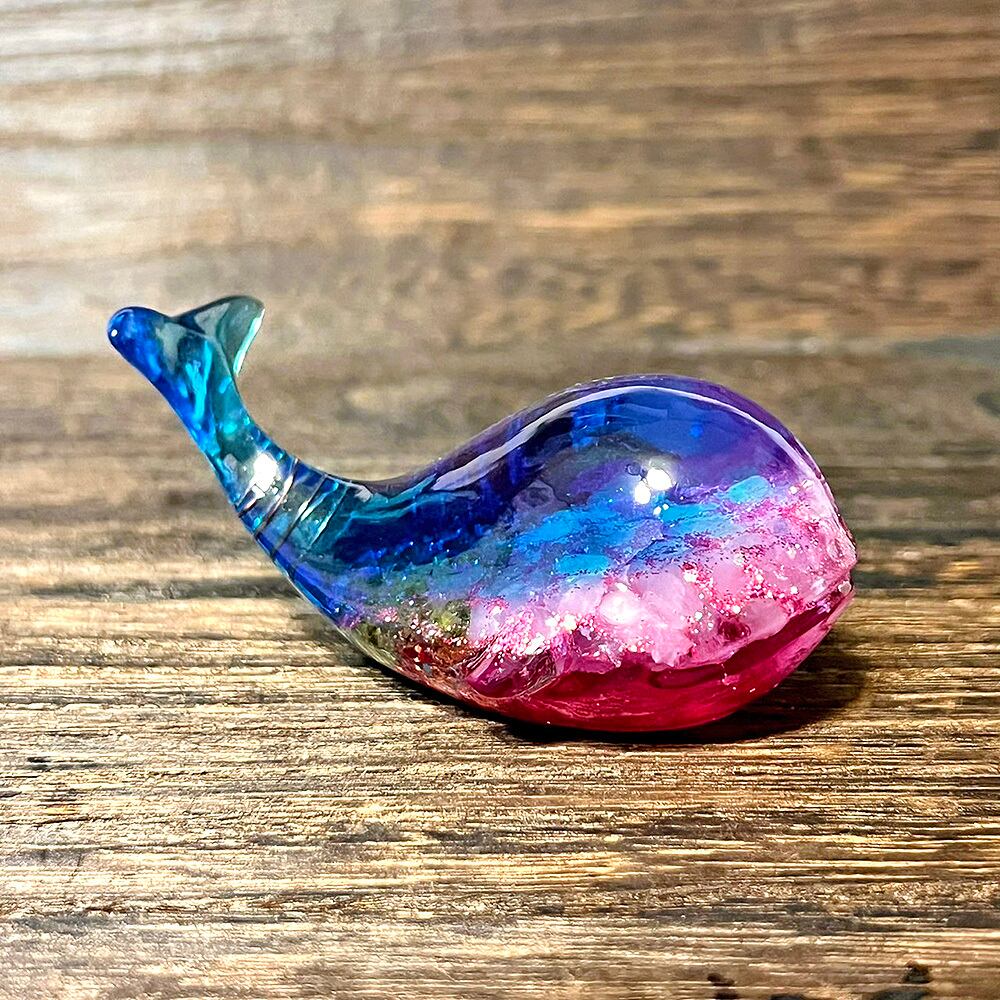 神秘的で可愛いクジラのオルゴナイト。天然石やラメを使って、美しく神秘的でファンタジーな深海の世界に仕上げました。