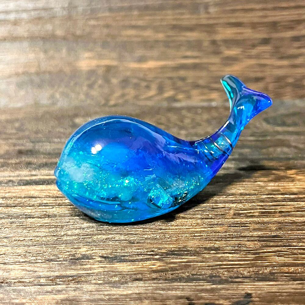 神秘的で可愛いクジラのオルゴナイト。天然石やラメを使って、美しく神秘的でファンタジーな深海の世界に仕上げました。