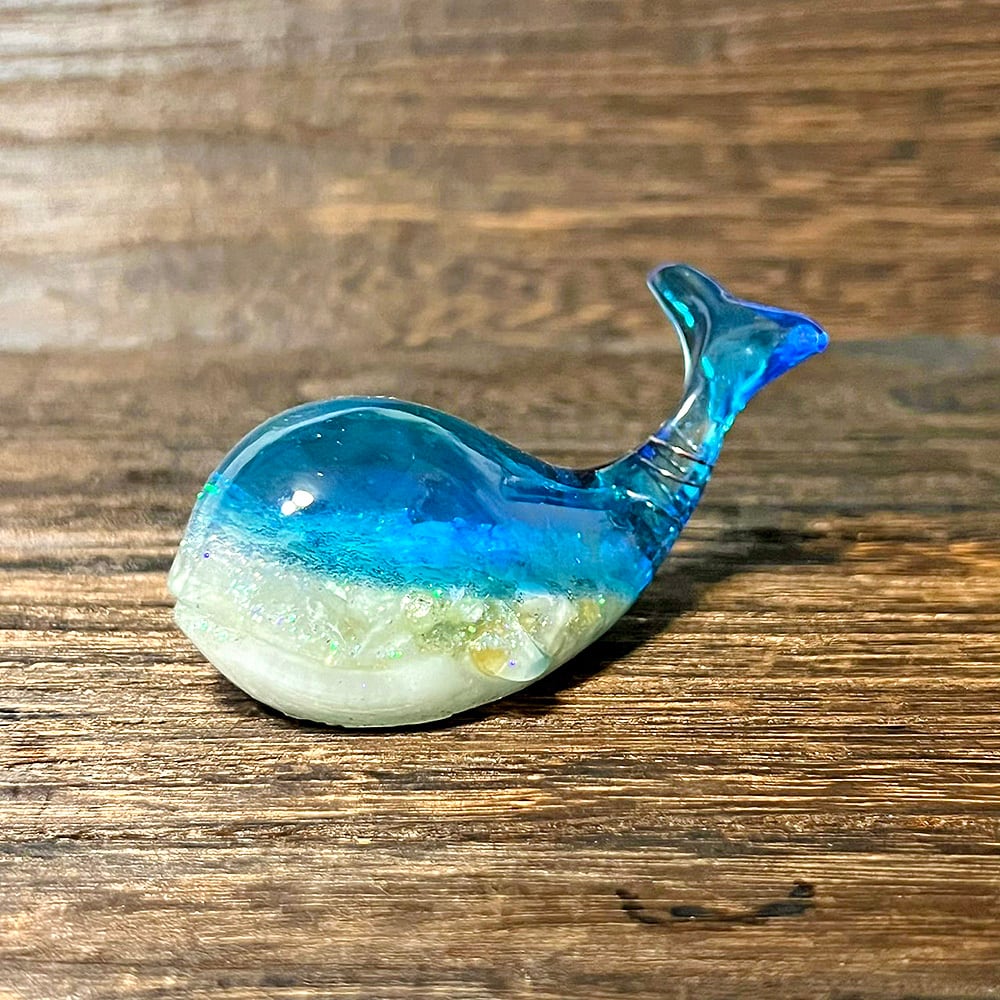 神秘的で可愛いクジラのオルゴナイト。天然石やラメを使って、美しく神秘的でファンタジーな深海の世界に仕上げました。