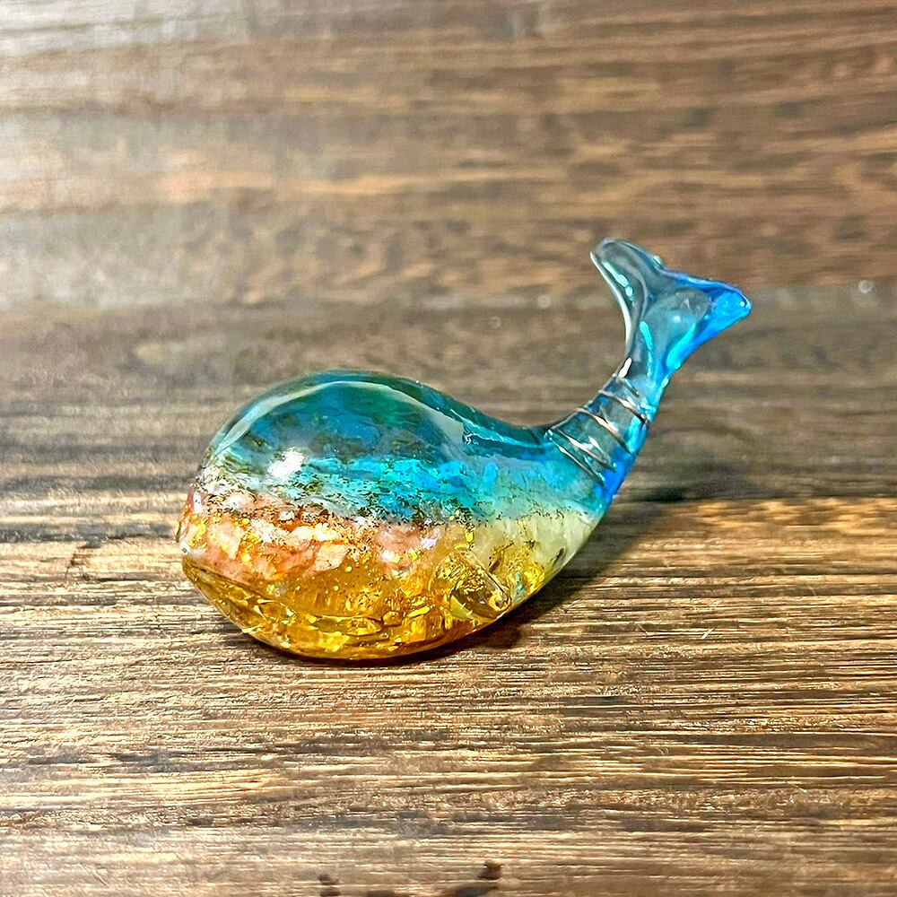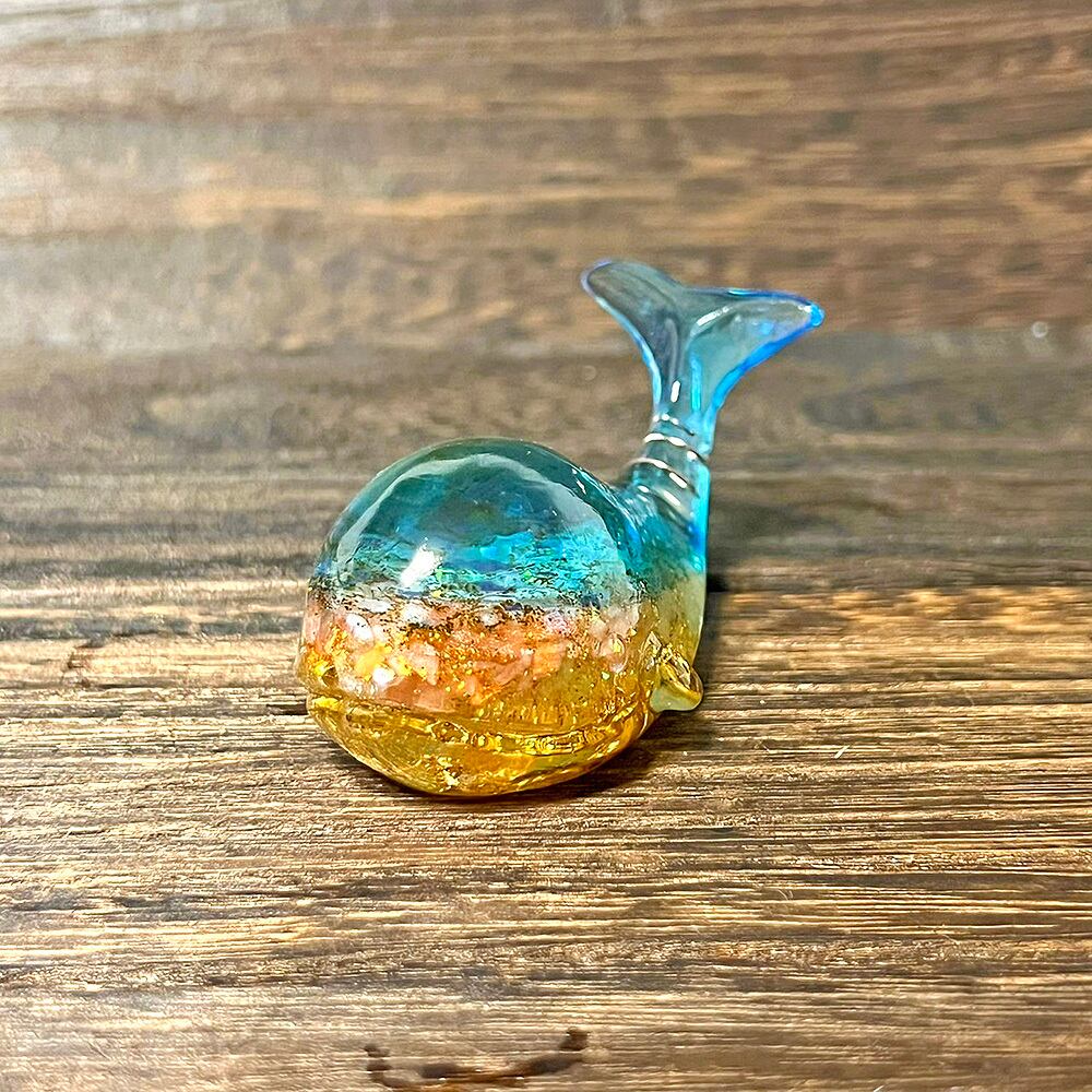 神秘的で可愛いクジラのオルゴナイト。天然石やラメを使って、美しく神秘的でファンタジーな深海の世界に仕上げました。