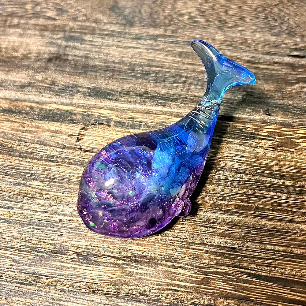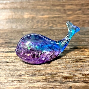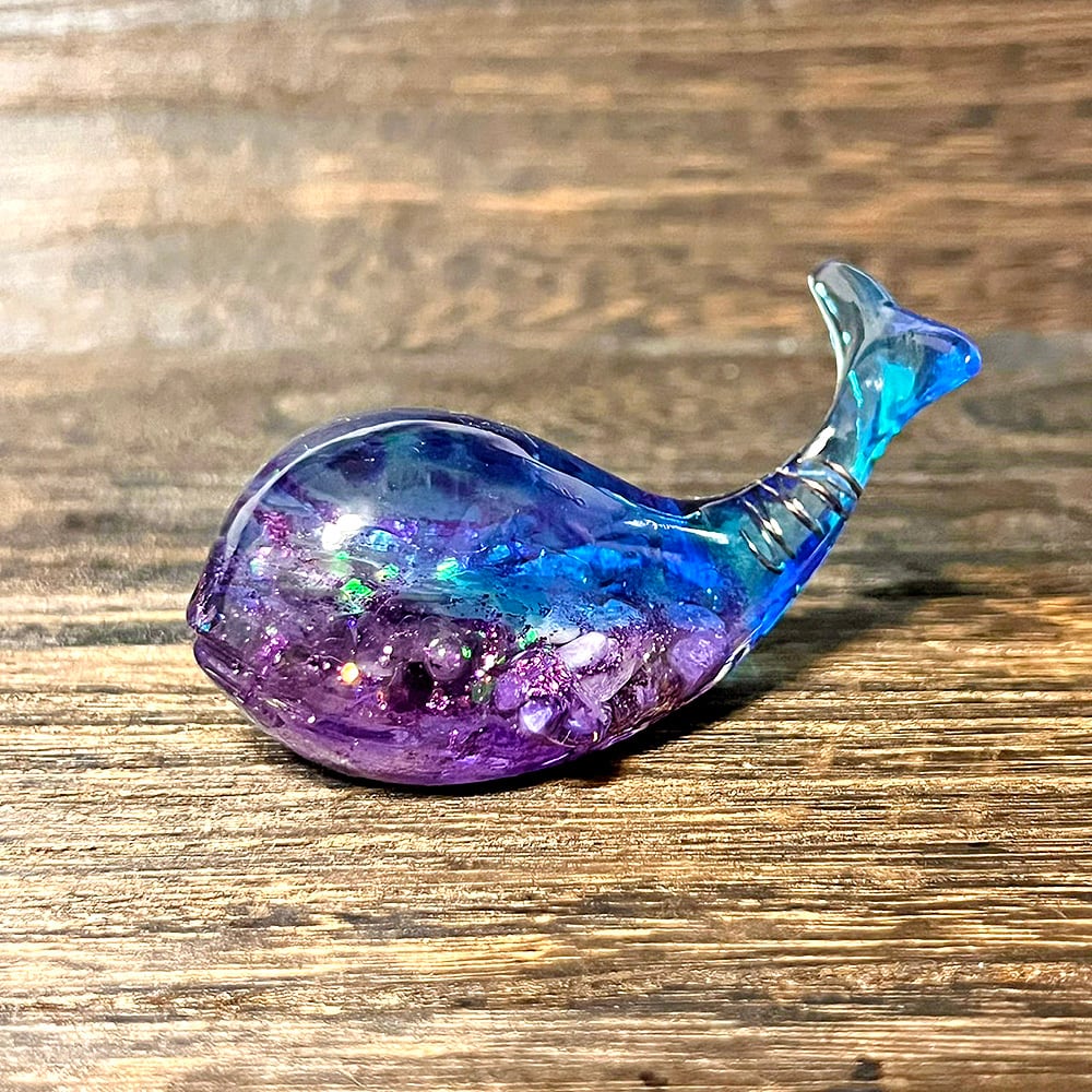神秘的で可愛いクジラのオルゴナイト。天然石やラメを使って、美しく神秘的でファンタジーな深海の世界に仕上げました。