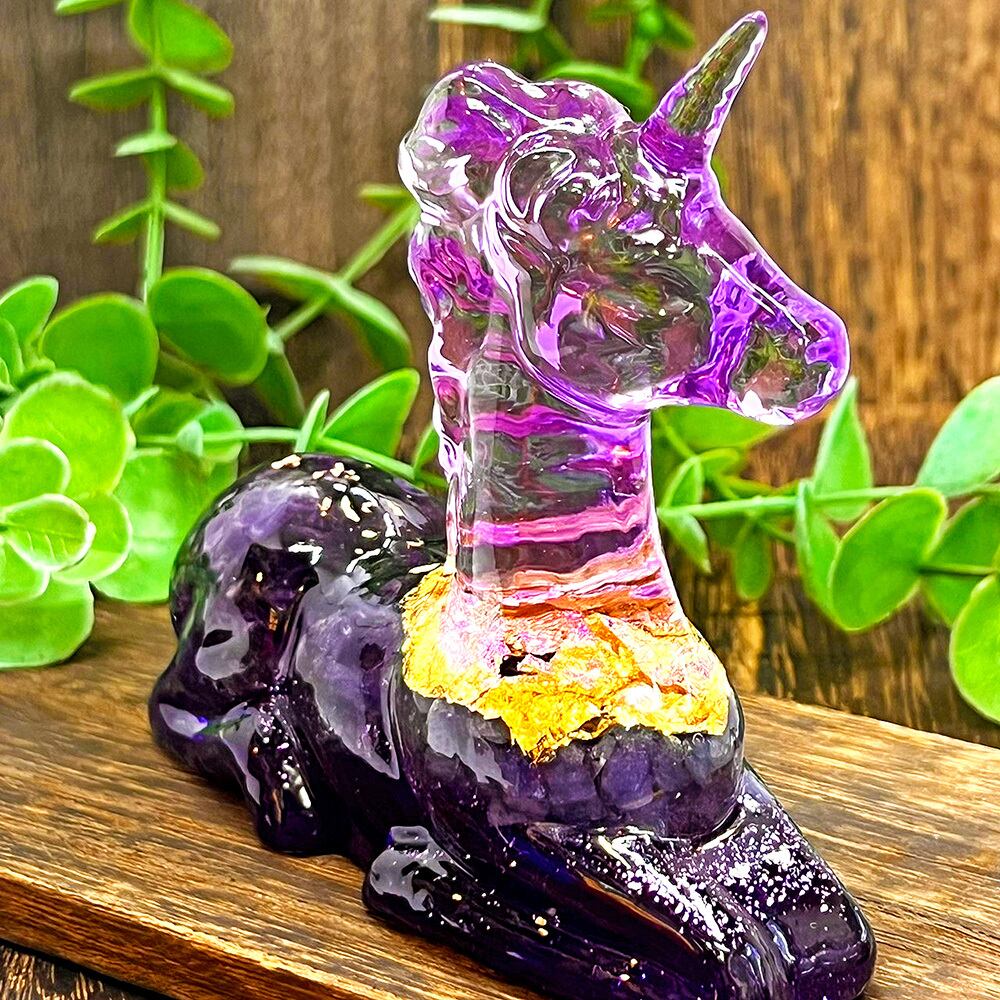 やさしい雰囲気のユニコーンのオルゴナイト。