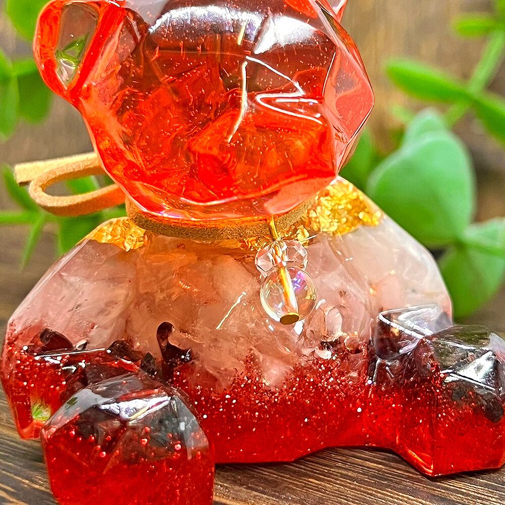 こぐまのオルゴナイト ローズクォーツ&ガーネット 首飾り付き
