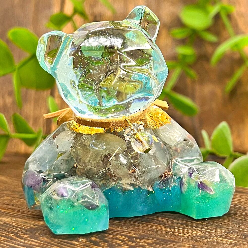 こぐまのオルゴナイトは、癒しと浄化、またネガティブなエネルギーをポジティブなエネルギーに変換するオルゴナイトとしての効果に加え、内封した石それぞれの意味や効果の恩恵をうけることができます。