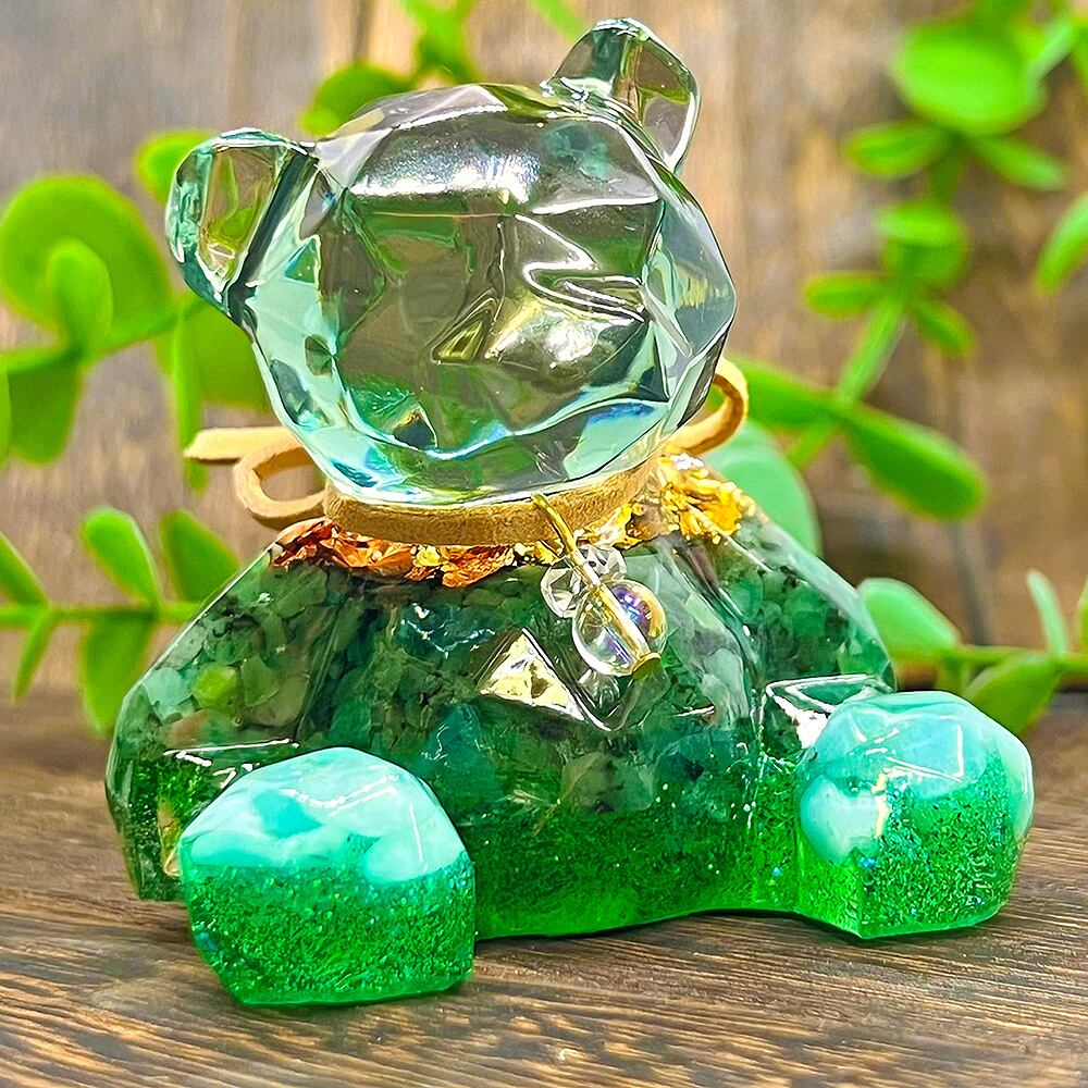 こぐまのオルゴナイト エメラルド&アマゾナイト 首飾り付き