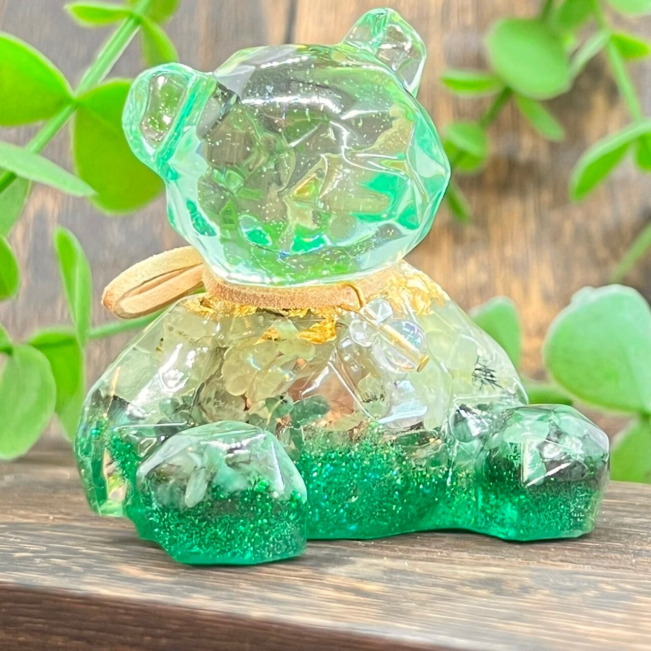 こぐまのオルゴナイト プレナイト&エメラルド 首飾り付き