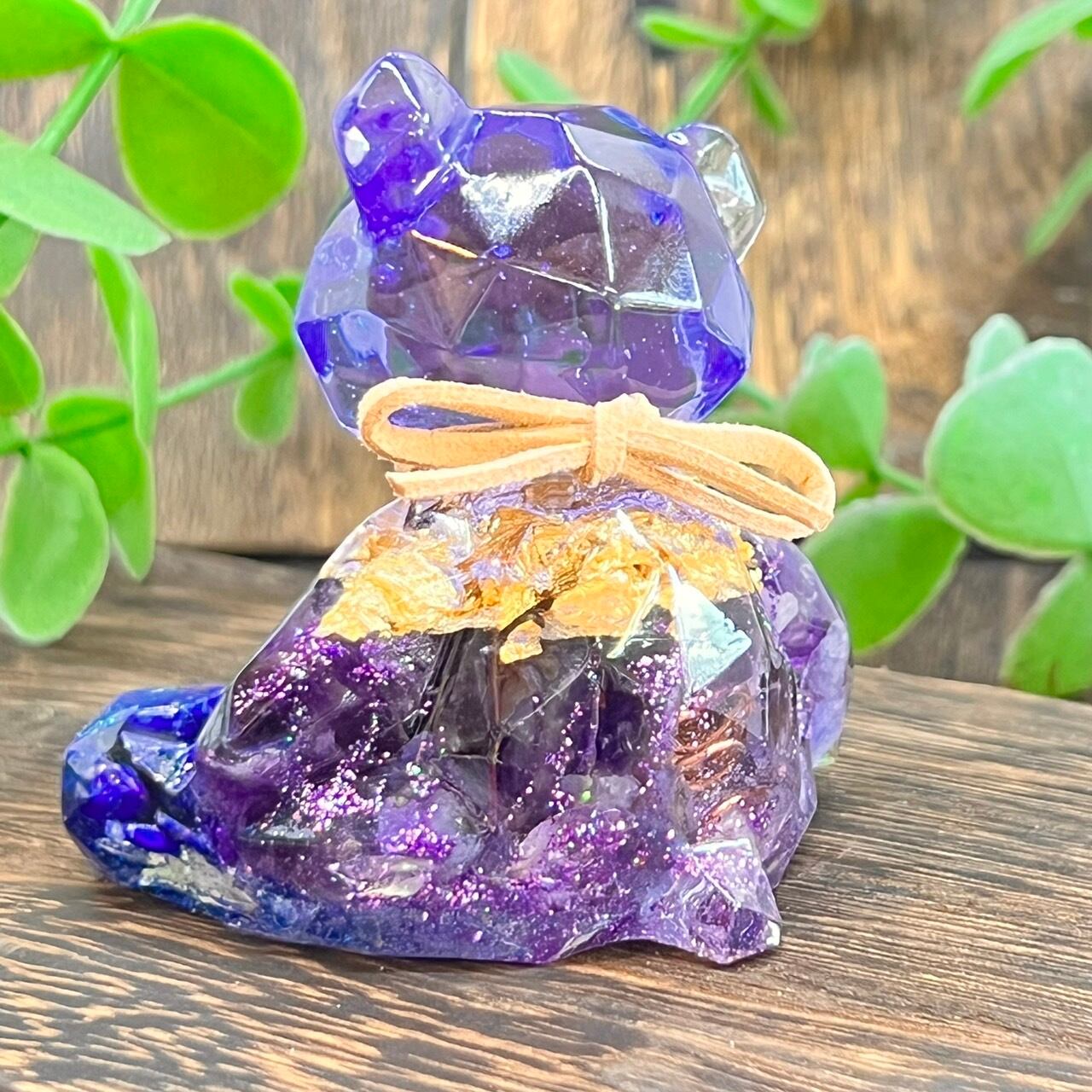 こぐまのオルゴナイト アメジスト&ラピスラズリ 首飾り付き