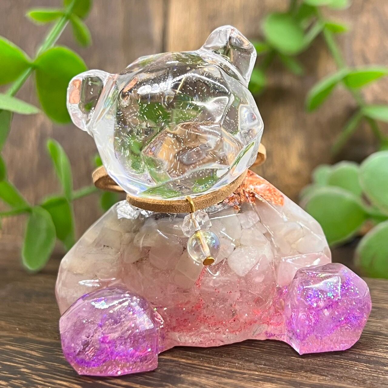 こぐまのオルゴナイトは、癒しと浄化、またネガティブなエネルギーをポジティブなエネルギーに変換するオルゴナイトとしての効果に加え、内封した石それぞれの意味や効果の恩恵をうけることができます。