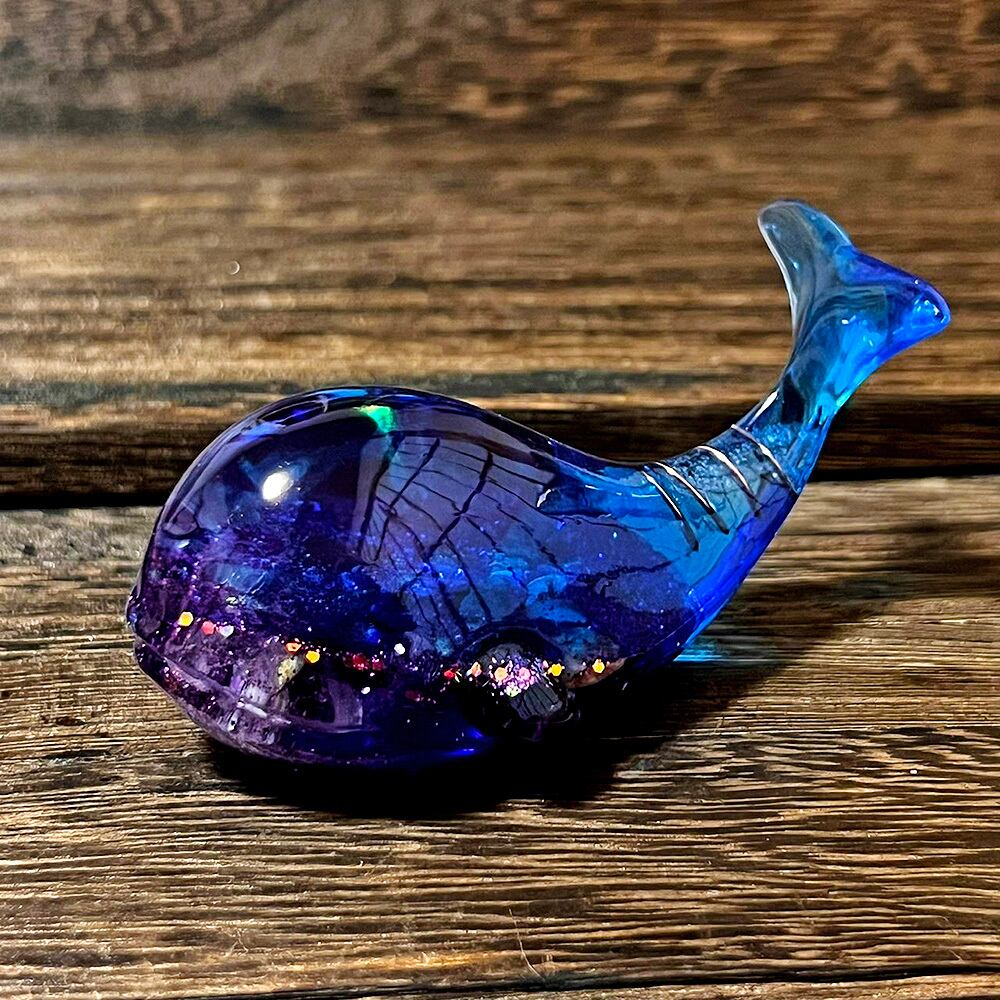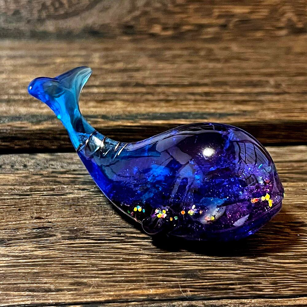 神秘的で可愛いクジラのオルゴナイト。天然石やラメを使って、美しく神秘的でファンタジーな深海の世界に仕上げました。