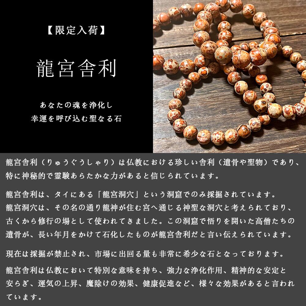 龍宮舎利を身に着けることで、心身の浄化、精神的な安定、運気の上昇、魔除けの効果、健康促進など、様々な恩恵を受けることができると言われています。